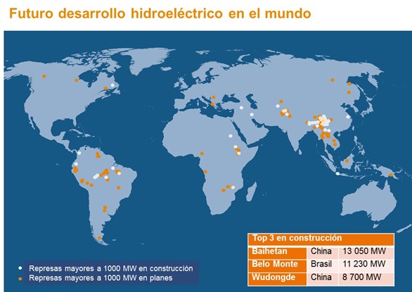En cuanto a organismos internacionales, asegura que el Banco Mundial “está volviendo a fomentar y apoyar este tipo de proyectos”, recordando que hasta hace algún tiempo este organismo había suspendido el financiamiento de plantas hidroeléctricas. También menciona a inversionistas chinos que están operando en varios países.